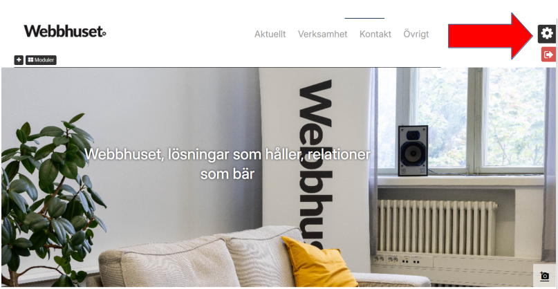 Börja med att logga in i Digistoff. Klicka sedan på fliken Hantera sajt (kugghjulet till höger).