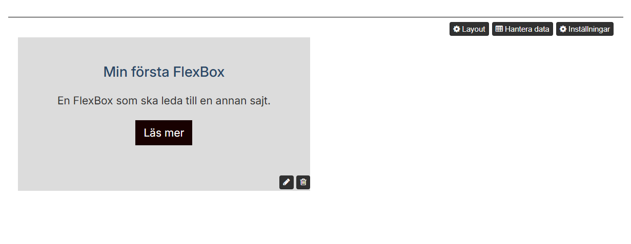 Knappfärgen har valts till svart och Textfärgen som Ljus text. Detta gör att vi nu fått en FlexBox som ser ut på det här viset efter att vi klickat på Spara: