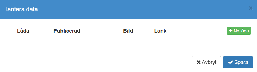 I nästa steg vill jag lägga till två FlexBoxar. Eller som det heter på "Digistoff språk" - lägga till två lådor. Börja med att klicka på knappen Hantera data varpå en ny vy öppnas.