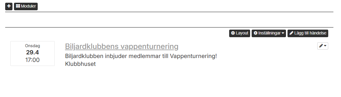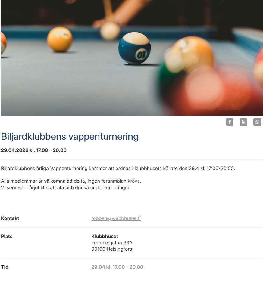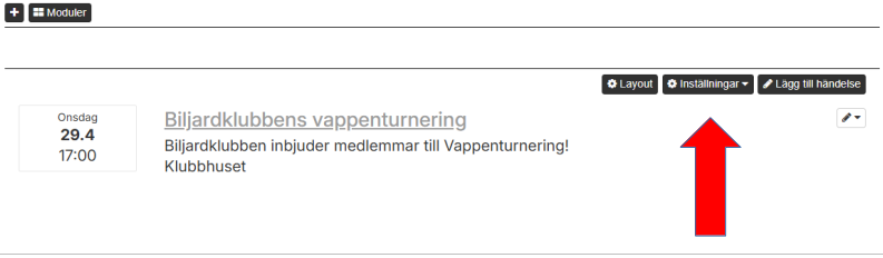 I det här fallet skapas ett evenemang för en biljardklubb: