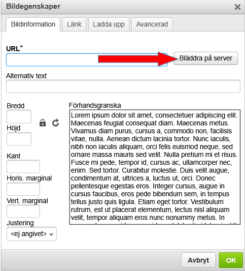 I rutan som öppnas så klickar du på knappen "Bläddra på server", som den röda pilen visar.