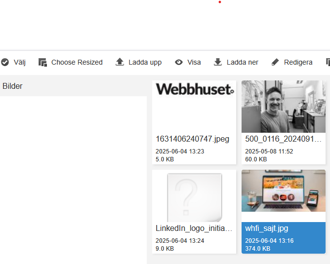 Du har nu lagt upp bilden på hemsidan. Nedan skall vi gå igenom hur du ändrar storleken på bilden.