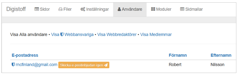 Klicka på Användare.4. Tryck på rätt användarnamn (e-postadress)